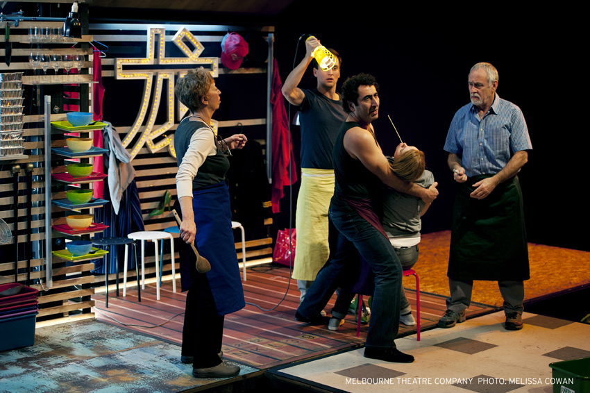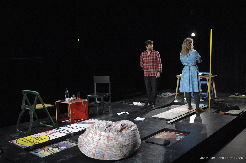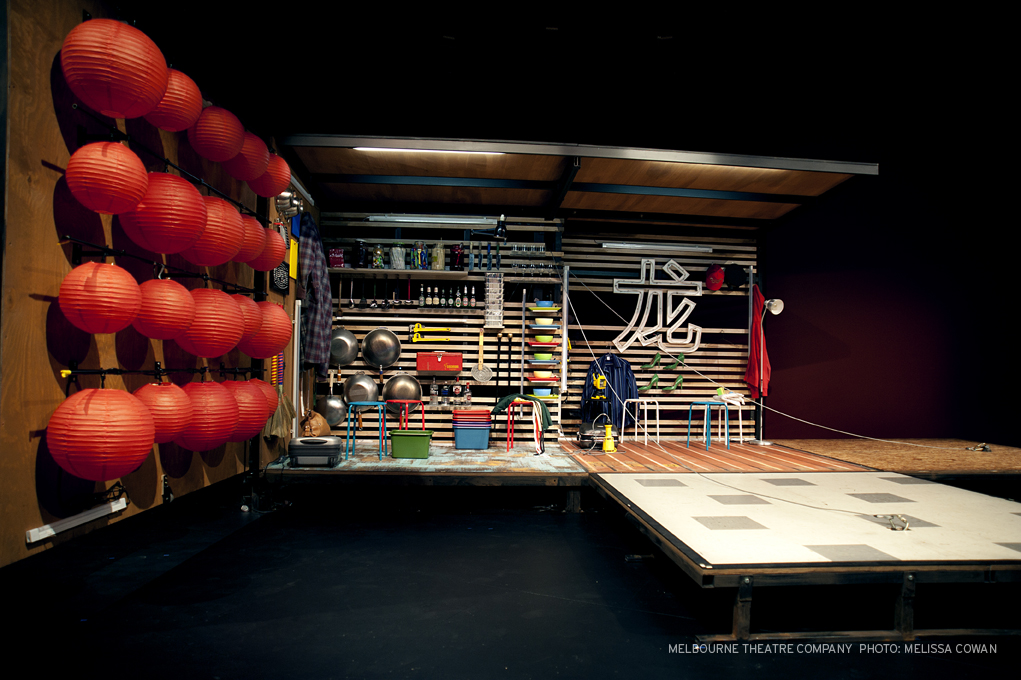 Andrew Bailey has designed sets for three of the five 2012 Studio Season productions. Post-show, theatre staff consistently mentioned that people hung around afterwards to get a closer look at the intricate designs and all the hidden surprises. For “On the Production of Monsters”: Bailey created a pop-up set which featured desks, chairs, beanbags, treadmills and, of course, the famous toaster cannon. Bailey’s set for “The Golden Dragon”: took the shape of a wooden box which opened up to not only represent a restaurant but also multiple apartments and outdoor settings. Finally, “Happy Ending”: draws on the idea of a shopping centre massage clinic, but transforms into living rooms, shops and cafes. In anticipation of his set design for Happy Ending we’ve put together a collection of Andrew Bailey’s sets from this year.